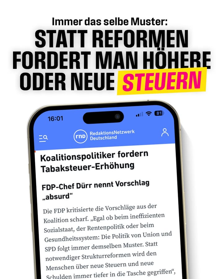 Mehr Netto vom Brutto und eine gerechte Altersvorsorge für alle Generationen. Wir wollen Steuern senken, um Bürger:innen zu entlasten. Dazu gehört: der Abbau des Mittelstandsbauches und eine automatische Anpassung der Einkommensteuer an die Inflation, ein höherer Grundfreibetrag, die Abschaffung des Solis und ein Spitzensteuersatz, der nicht von der Mitte, sondern nur von Spitzenverdienern gezahlt wird.